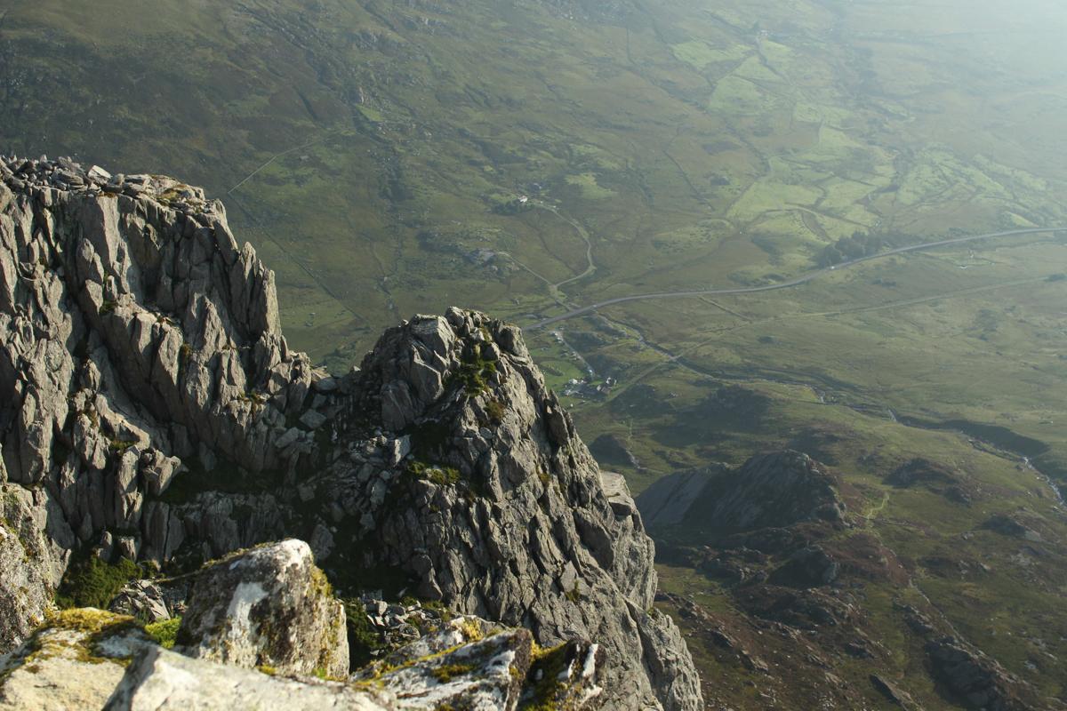 Tryfan crags from the summit, 910m.